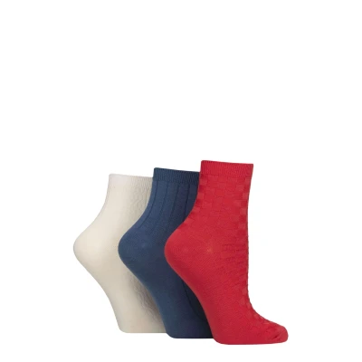Women's 3 Pair SOCKSHOP Plain and Patterned Bamboo Ankle Socks Textured Nautical 4 8