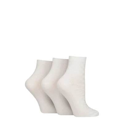 Women's 3 Pair SOCKSHOP Plain and Patterned Bamboo Ankle Socks Textured White 4 8