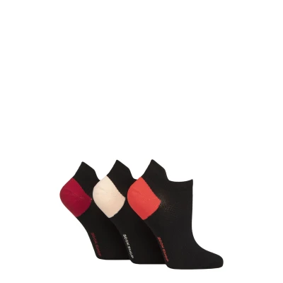 Women's 3 Pair SOCKSHOP Poly Sports No Show Socks Black / Tuscan Rose 4 8