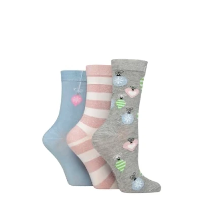 Women's 3 Pair SOCKSHOP Wildfeet Christmas Patterned Bamboo Socks Baubles / Stripes 4 8