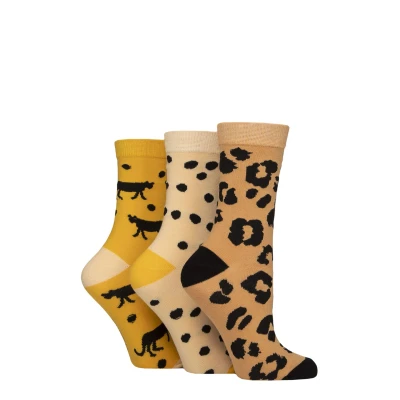 Women's 3 Pair SOCKSHOP Wildfeet Cotton Novelty Patterned Socks Animal Print 4 8