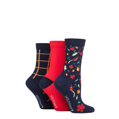 Women's 3 Pair SOCKSHOP Wildfeet Cotton Novelty Patterned Socks Autumn Floral 4 8 UK