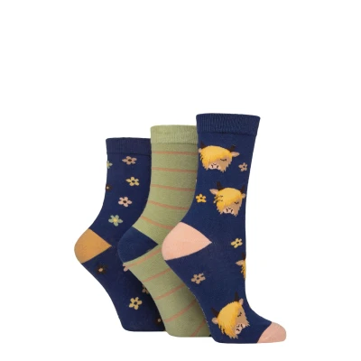 Women's 3 Pair SOCKSHOP Wildfeet Cotton Novelty Patterned Socks Highland Cow 4 8