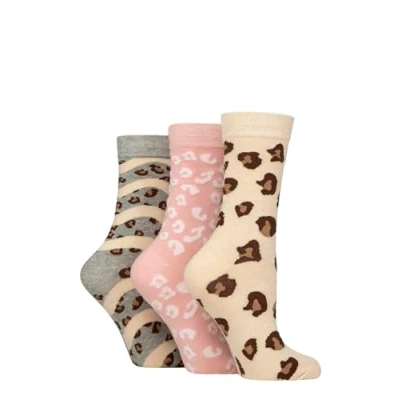 Women's 3 Pair SOCKSHOP Wildfeet Cotton Novelty Patterned Socks Leopard Prints 4 8