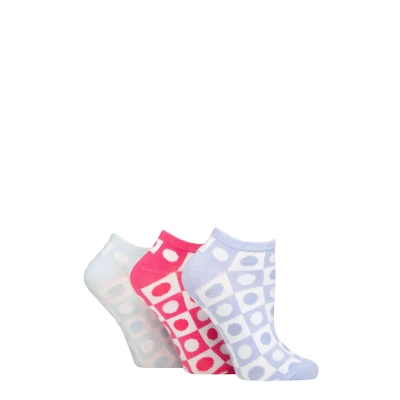 Women's 3 Pair SOCKSHOP Wildfeet Cotton Patterned Trainer Socks Spotty Check Lilac / Pink Blue 4 8