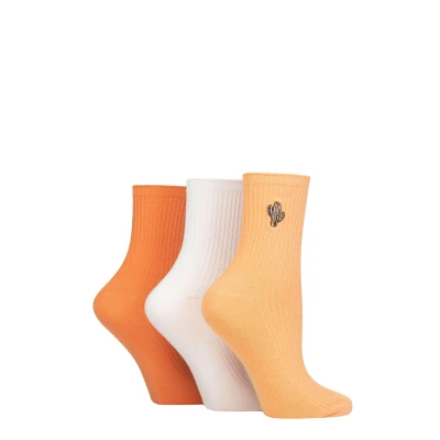 Women's 3 Pair SOCKSHOP Wildfeet Embroidered Ribbed Socks Orange Cactus 4 8