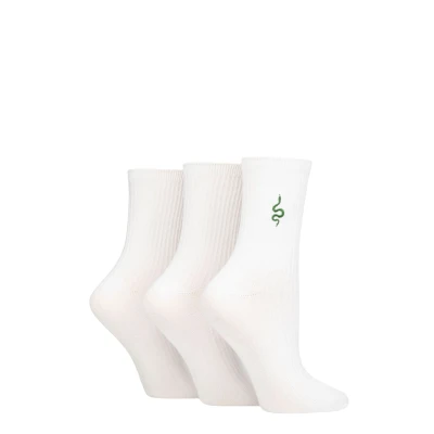 Women's 3 Pair SOCKSHOP Wildfeet Embroidered Ribbed Socks White Snake 4 8 UK