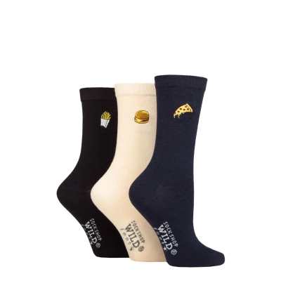 Women's 3 Pair SOCKSHOP Wildfeet Embroidered Socks Pizza / Burger Fries 4 8 UK