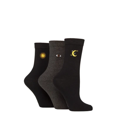 Women's 3 Pair SOCKSHOP Wildfeet Embroidered Socks Star / Eye Sun 4 8