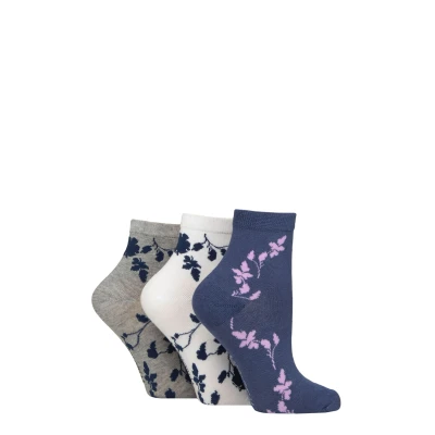 Women's 3 Pair SOCKSHOP Wildfeet Mid Length Bamboo Socks Floral 4 8