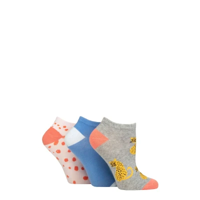 Women's 3 Pair SOCKSHOP Wildfeet Novelty Cotton Trainer Socks Cheetah 4 8