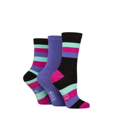 Women's 3 Pair SOCKSHOP Wildfeet Patterned Bamboo Socks Block Stripe Black 4 8