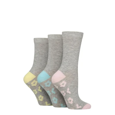 Women's 3 Pair SOCKSHOP Wildfeet Patterned Bamboo Socks Floral Light Grey 4 8