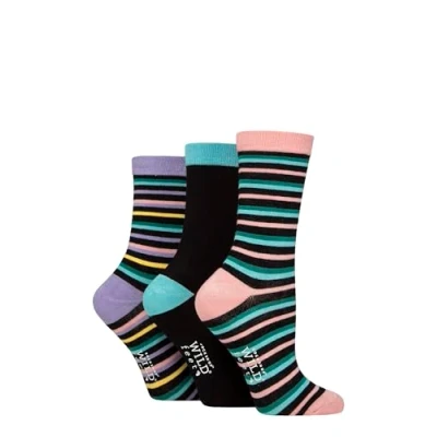 Women's 3 Pair SOCKSHOP Wildfeet Patterned Bamboo Socks Multi Stripes Black 4 8