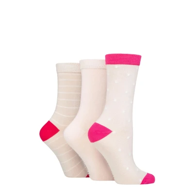 Women's 3 Pair SOCKSHOP Wildfeet Patterned Bamboo Socks Polka Dot Oatmeal 4 8 Ladies