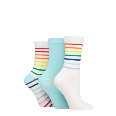 Women's 3 Pair SOCKSHOP Wildfeet Patterned Bamboo Socks Rainbow Stripe White 4 8