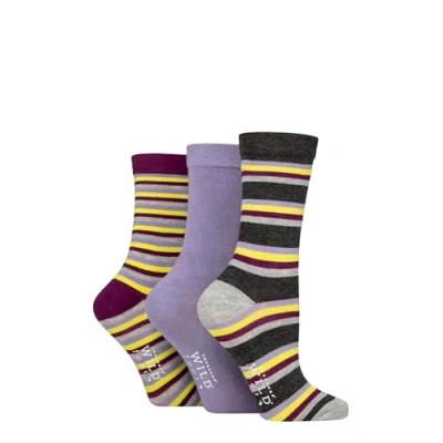 Women's 3 Pair SOCKSHOP Wildfeet Patterned Bamboo Socks Stripes Charcoal 4 8