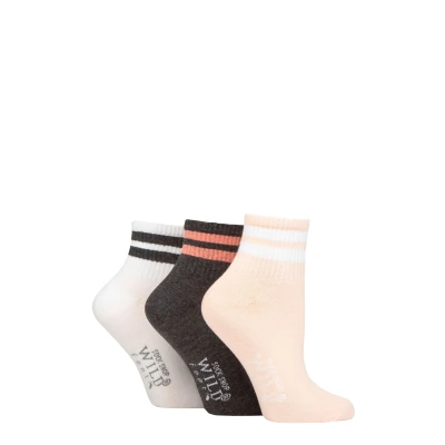 Women's 3 Pair SOCKSHOP Wildfeet Plain Mid Cut Ribbed Crew Socks Pink / Charcoal White 4 8 UK