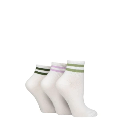 Women's 3 Pair SOCKSHOP Wildfeet Plain Mid Cut Ribbed Crew Socks White / Green 4 8