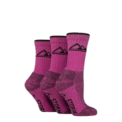 Women's 3 Pair Storm Bloc Cotton Luxury Heavy Cushion Boot Socks Cerise / Black 4 8
