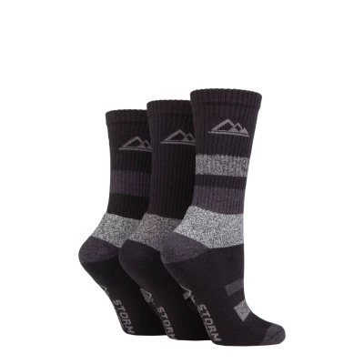 Women's 3 Pair Storm Bloc Cotton Striped Boot Socks Black / Grey 4 8 Ladies