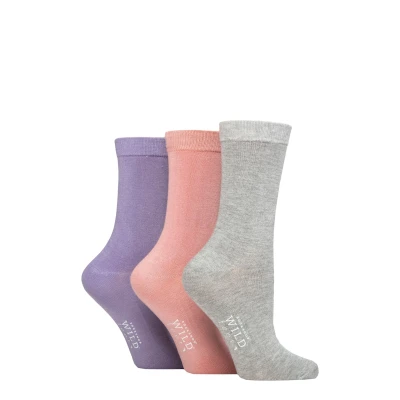 Women's 3 Pair Wildfeet Plain Bamboo Socks Grey / Pink Purple 4 8
