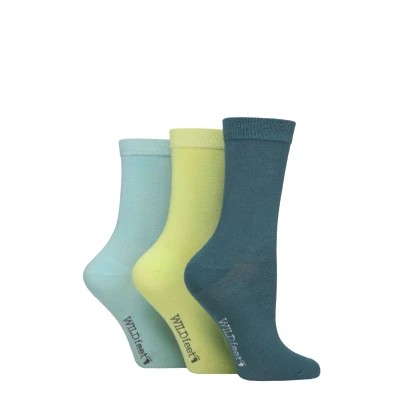 Women's 3 Pair Wildfeet Plain Bamboo Socks Teal / Green Light Blue 4 8