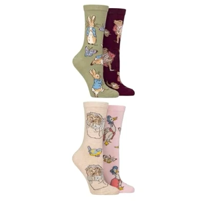 Women’s 4 Pair SOCKSHOP Beatrix Potter Peter Rabbit, Jeremy Fisher, Miss Tiggy Winkle and Jemima Puddle Duck Gift Boxed Socks Multi 8 Women's