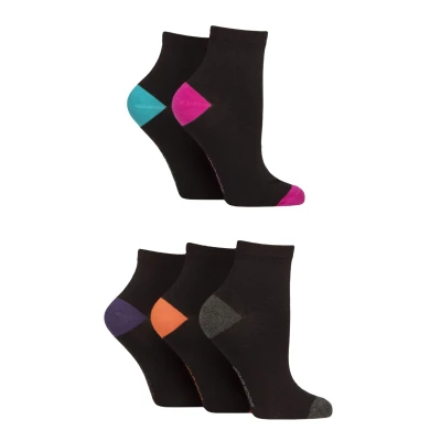 Women's 5 Pair SOCKSHOP Plain and Patterned Bamboo Anklet Socks Heel & Toe Black Bright 4 8