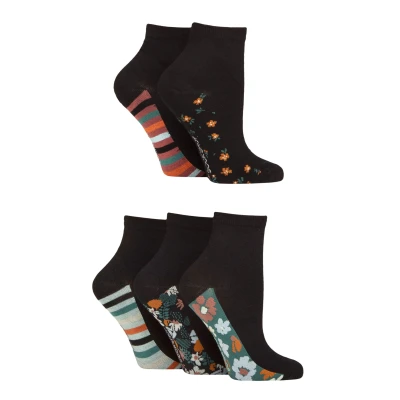 Women's 5 Pair SOCKSHOP Plain and Patterned Bamboo Anklet Socks Sole Floral 4 8