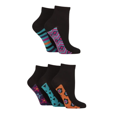 Women's 5 Pair SOCKSHOP Plain and Patterned Bamboo Anklet Socks Sole Geometric 4 8