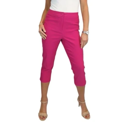 Women's Cropped Capri Trousers Ladies High Waist Stretch Bengaline Everyday 3/4 Pants Fuchsia Pink 8 20 (12)
