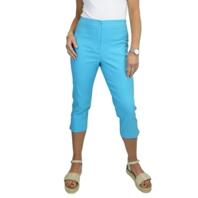 Women's Cropped Capri Trousers Ladies High Waist Stretch Bengaline Everyday 3/4 Pants Turquoise Blue 8 20 (14)