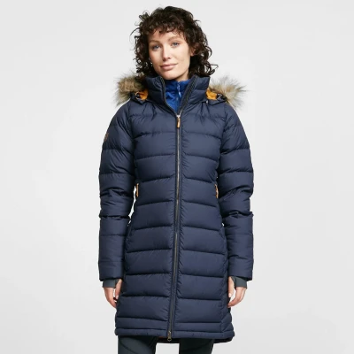 The Women's Deep Cover Parka is designed to keep you comfortable, dry and warm during cold conditions. The inside is filled with 700FP P.U.R.E 100% recycled down which is highly compressible and extremely insulating. The insulation is protected by a recycled Pertex Quantum outer fabric which is coated in a fluorocarbon-free durable water-repellent (DWR) finish. The jacket is excellent at tackling light showers and snowfall, offering you ultimate protection against the elements. This snug down jacket is designed to deliver extreme winter performance within a flattering, feminine cut. Featuring an insulated detachable hood with a cosy, removable faux-fur trim, it'll keep you warm and cosy on frosty walks. Stash your valuables safely inside the inner zipped chest pocket and place cold hands in the two deep front pockets when the wind picks up. The cuffs have a stretch fleece lining ensuring gloves fit seamlessly while the durable two-way YKK Metaluxe front zip has an internal storm flap for added protection. Features Premium recycled down long-length winter parka Ethically sourced RDS 700FP P.U.R.E recycled down with Nikwax Hydrophobic finish - delivers impressive warmth for its weight and deals with moisture better than standard down 20D Recycled (38gsm) lining and 50D recycled Pertex Quantum outer (72gsm) with a fluorocarbon-free DWR finish Cuffs with stretch fleece lining - creates a seamless fit with gloves Durable, two-way YKK Metaluxe front zip Internal storm flap 2 x deep YKK zipped front pockets and 1 x interior YKK zipped chest pocket Weight: 824g (Size 10)
