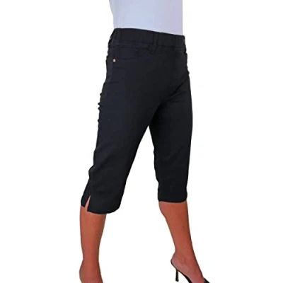 Women's Elasticated Waist Below Knee Jogger Style Jeggings Ladies Stretch Denim Crops Black 10 22 (10)