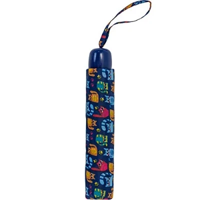 Women's Folding Umbrella Compact 24 cm Blue with Cat Print