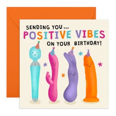 Women's Funny Birthday Card 'Sending Positive Vibes' Playful and Cheeky Presents for Friends, Girlfriend, Bestie, BFF, Partners, Colleagues Comes with Fun Stickers