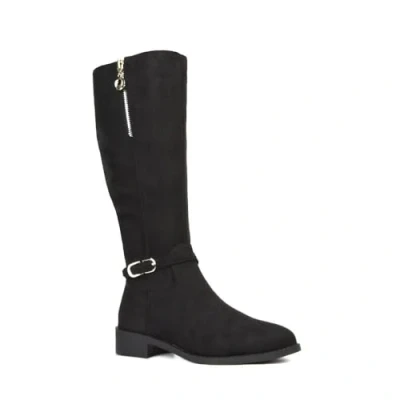Women's Knee High Boots Flat Low Heel Ladies Zip Calf Leg Black Faux Suede Biker Riding Shoes Size 5
