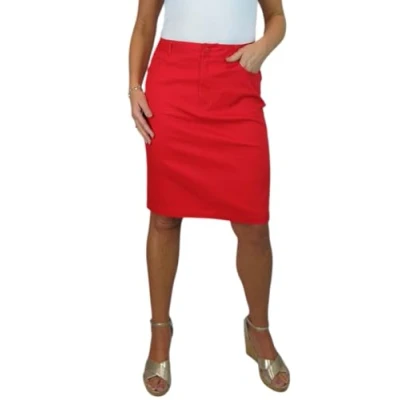 Women's Knee Length Stretch Chino Pencil Skirt Ladies Jeans Style Heavy Cotton Casual Summer Red 8 20 (20)