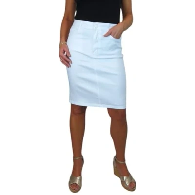 Women's Knee Length Stretch Chino Pencil Skirt Ladies Jeans Style Heavy Cotton Casual Summer White 8 20 (16)