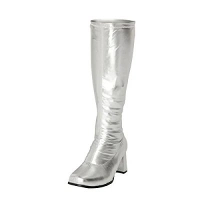Women's Ladies Fancy Dress 1960's & 70's Knee High Go Retro Boots Size UK 3 12 (UK 7, Silver)