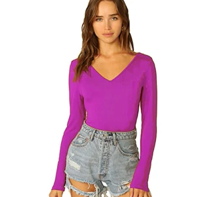 Versatile Design: This women's long sleeve V-neck top is a basic yet essential piece for any wardrobe. Its plain design and slim fit make it a versatile option that can be worn for casual wear or dressed up for more formal occasions. Comfortable Material: Made from 95% viscose and 5% elastane, this top is stretchy and comfortable to wear all day long. The material is also breathable, ensuring you stay cool and comfortable, even on warmer days. Flattering Fit: The slim fit design of this top hugs your curves in all the right places, while the V-neckline adds a touch of elegance. The long sleeves make it perfect for cooler weather, while the stretchy material ensures a comfortable and flattering fit. Range of Sizes: This top is available in UK sizes 8-26, ensuring there is a size to fit women of all shapes and sizes. Its slim fit design means it can accommodate a variety of body types, while the stretchy material ensures a comfortable and flattering fit. Easy to Pair: This top can be paired with a variety of pants, skirts, and accessories, making it a versatile addition to any wardrobe. Its plain design ensures it can be dressed up or down, making it a great option for a variety of occasions. Whether for casual wear or dressed up for a night out, this top is a must-have.