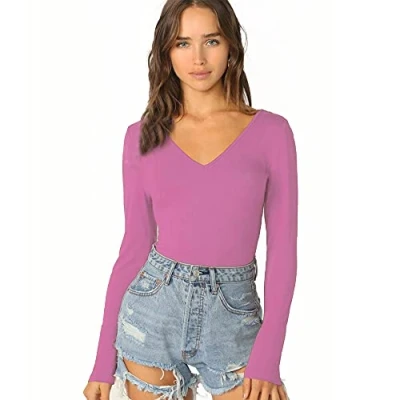 STAR FASHION NEW ARRIVAL: Simple, long-sleeved basic top T-shirt with V-neckline made from soft, stretchy comfort material (95% viscose, 5% elastane) slim fit and stretchy. Approximate length: 26 inches EVERYDAY WEAR: It is lightweight and breathable; these T-shirts for women are the best option for everyday use if you just want to put on something and get going. The perfect combination of comfort and style. STYLISH & FASHIONABLE: Long sleeve T-shirt with V-neck and vest is the best option to wear in any season, as it keeps you so comfortable. Style this stretchy long-sleeved T-shirt with V-neck with tight denim, skinny leggings, long or short pencil skirt and baggy denim jackets. BEST OCCASIONAL WEAR: This basic plain top with V-neck keeps you cool and adds a modern touch to the classic style. Comfortable to wear in office, work, party, evening casual club, travel, home, beach, holiday, etc. Garment Care: Machine washable. Made in the UK. Colour may vary slightly from the pictures. There are different colours and sizes to choose from. Choose your dream colour. Returns accepted.