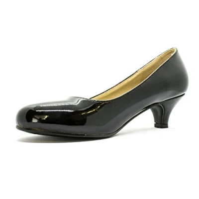 Women's Ladies Round Toe Kitten Heel Dress Work Party Pumps Big Sizes Shoes (UK12(EU46), Black Patent)