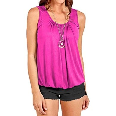 Women’s Ladies Vest Bubble Top Sleeveless Loose fit Round Scoop Elasticated Stretch Summer Jersey Multi Colors Fuchsia 24 26
