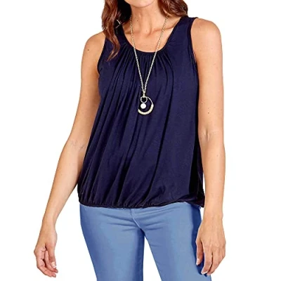 Women’s Ladies Vest Bubble Top Sleeveless Loose fit Round Scoop Elasticated Stretch Summer Jersey Multi Colors Navy 8 10