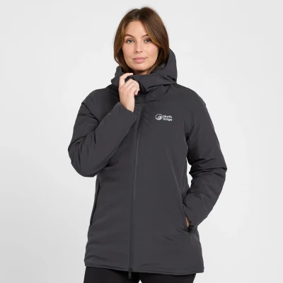 BlacksThe Women's Latitude Parka showcases a cutting-edge baffle construction using Dupont Sorona insulation, a partially plant-based fibre that not only outperforms other insulation materials but also significantly reduces energy consumption during production. Thanks to Sorona's unique compression and recovery properties, you can easily stow the jacket away when necessary too. · 2-Layer 75D Stretch waterproof fabric with PFC Free DWR · Waterproof rating 10,000mm · Sorona insulation: Contains 37% renewable plant-based ingredients · Sorona uses 30% less energy and releases 63% fewer greenhouse gas emissions to produce compared to production of Nylon 6 · 30D Lining · 2x Zipped hand pockets · 1x Internal zipped pocket · Large hood with deep collar · 2-way front zip with internal storm guard · Elasticated cuffs · Regular fit · Weight: 367g (Size 12) · Outer fabric: 88% Polyester / 12% Spandex · Lining: 100% Polyester · Colour: Grey