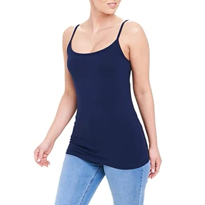 Women's Plain Sleeveless Vest Ladies Stretch Round Neckline Long Spaghetti Strap T Shirt Camisole Layering Tank Top (16 18, Navy)