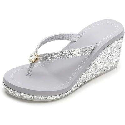 Women's Platform Flip Flops Rhinestone Sandals Wedge Slipper For Summer