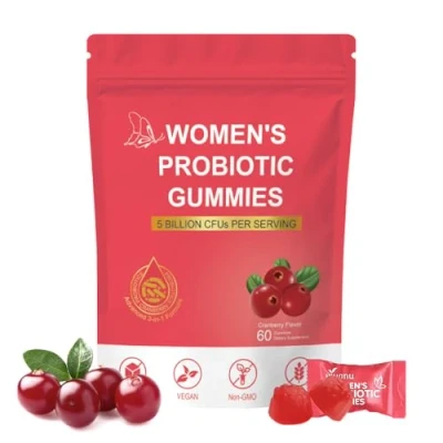 Women's Probiotic Gummies, Premium Feminine PH Balance Gummy, 5 Billion CFUs, Cranberry Flavour, Sugar Free, Vegan, 60 Count